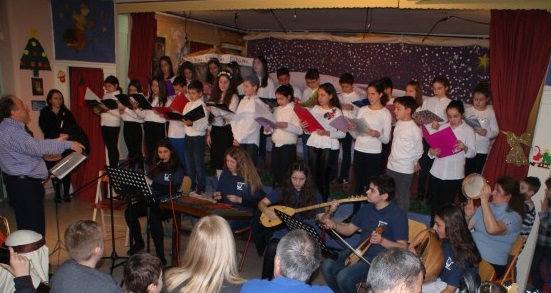 Ευχαριστούμε πολύ το Διευθυντή κο Γεώργιο Βαρδακώστα και τους μαθητές του παραδοσιακού σχήματος του Μουσικού Σχολείου Κατερίνης γιατί με τη συμμετοχή τους έδωσαν άλλο χρώμα στη "Χριστουγεννιάτικη Γιορτή" του σχολείου μας συνοδεύοντας τη χορωδία μας σε κάλαντα από διάφορα μέρη της Ελλάδας (Μωραΐτικα, Θράκης, Ποντιακά, Ηπειρώτικα, Κρητικά, Ικαρίας και Χίου). Έπαιξαν: Άννα - Μαρία Θεοδώρου (σαντούρι), Άννα - Μαρία Σινωπίδου (καβάλι), Βασίλης Μαυρομουστακίδης (ποντιακή λύρα), Ελένη Σπανού (λαούτο), Μαρία Γεωργιάδου (ταμπουρά). Τους ευχόμαστε "Υγεία, "Ευτυχία" και "Δύναμη" για να συνεχίσουν να προσφέρουν στον τόπο μας όμορφες στιγμές. |