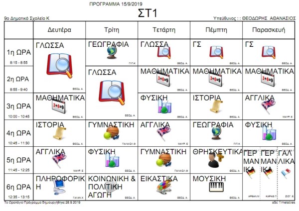 Πρόγραμμα μαθημάτων ανά τμήμα
