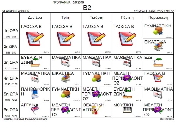 Πρόγραμμα μαθημάτων ανά τμήμα