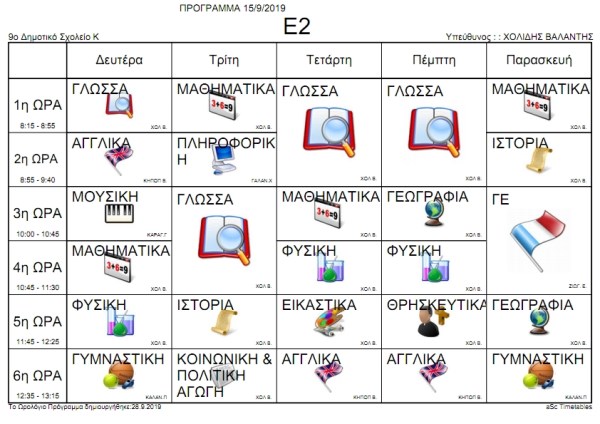 Πρόγραμμα μαθημάτων ανά τμήμα