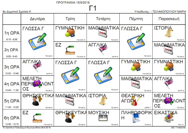 Πρόγραμμα μαθημάτων ανά τμήμα
