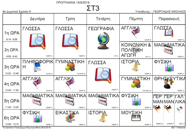 Πρόγραμμα μαθημάτων ανά τμήμα
